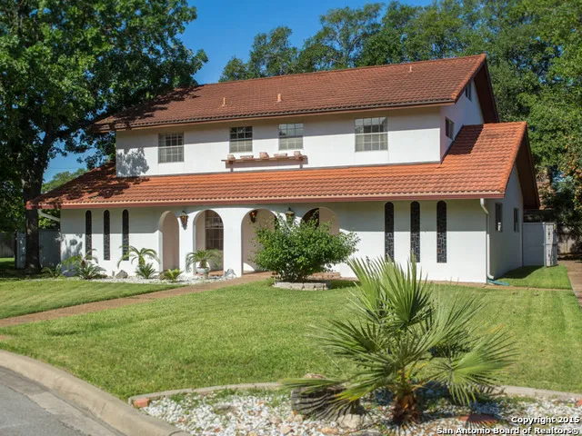 Timeless Spanish style 4/3 w/amazing curb appeal located on cul-de-sac in AHISD.Immaculate interiors w/original details from 1969 including saltillo tile flrs,brick frpl, light fixtures,wet bar & extraordinary stain glass accents.Updates include granite counters in ktch,SS & blck appliances,carpet on 2nd floor & refinished tile flrs.2nd floor master boasts huge walk-in closet w/adjacent office/sitting rm.Air conditioned finished-out attic.Double garage in back w/ side yard,privacy fence & mature oak trees.